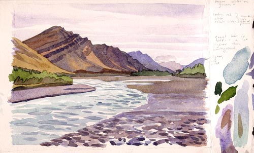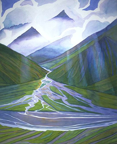 I was raised in Alaska, lived in California for ten years, and in 2001 moved back to Alaska. I return to the Arctic year after year to sketch, paint, and write in journals. I like to explore and to imagine that I am the first to discover remote places. When I travel north, I encounter environments which starkly and beautifully contrast the human world. Wilderness experiences are unique and are easy to retain in memory.